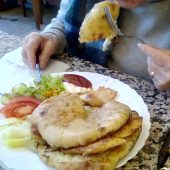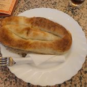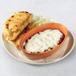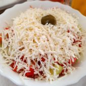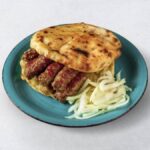 Punjena juneća pljeskavica sa sirom i kajmakom (300g), somun, luk