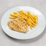 Piletina na žaru (200g), brioche, majoneza, ketchup, zelena salata, rajčica, kiseli krastavci