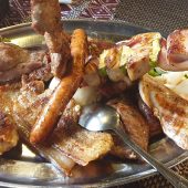 2 teleća kotleta, punjeni zabatak, punjena vješalica, 4 ćevapa, ražnjić, pileći špeksi ražnjić - normativ 1000 g