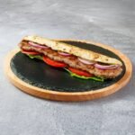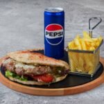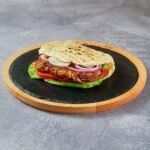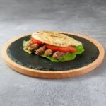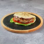 150g Δistog juneΔeg mesa, topi sir, panceta, iceberg, paradajz, kiseli krastvΔiΔi, ljubiΔasti luk, burger sos