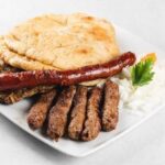 Čevapčiči špikani s sirom, lepinja, čebula, pijača po izbiri