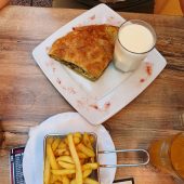 Čevapčiči špikani s sirom, lepinja, čebula, pijača po izbiri