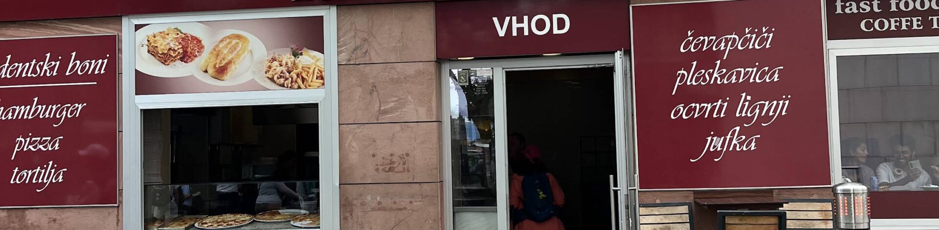 Fast food Slast Ljubljana, Slovenija - Ćevabdžinica Nune, Ferhadija 12, Sarajevo 71000, Bosnia & Herzegovina - Dobijte smjer Pogledaj fotografije Lista želja Informacije Recenzije Balkanski okusi, domača toplina in pravo gostoljubje to je popolna kombinacija za vse čute. Show more Show less Galerija slika How to get to Fast food Slast Adresa Ćevabdžinica Nune, Ferhadija 12, Sarajevo 71000, Bosnia & Herzegovina Dobijte smjer Pratite nas Usluge Mastercard , Visa Morate biti prijavljeni da biste ostavili recenziju. Login Budite prvi koji će recenzirati “Fast food Slast” Cancel replyMora da jesi prijavljen da objavite recenziju. Kako doći do Fast food Slast Adresa Ćevabdžinica Nune, Ferhadija 12, Sarajevo 71000, Bosnia & Herzegovina Dobijte smjer Pratite nas Usluge Mastercard , Visa