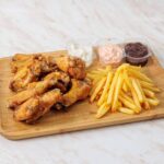 500 gr krilaca, 200 gr Pomfrit, sos po izboru 50g