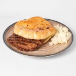 Pljeskavica 100 % junetina s Hrvatskih pašnjaka punjena sirom, lepinja, luk