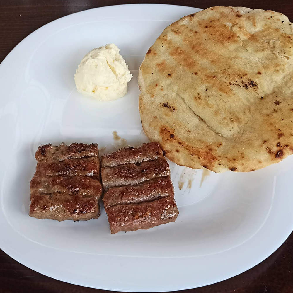 700 g. Ćevapi, vešalica, pileći ražnjići, svinjski ražnjići, kobasica, belo meso, pomfrit, dva somuna