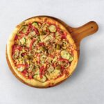 Umak od rajčice, goveđi kulen, goveđi pršut, goveđa kobasica, gauda sir, vrhnje, masline