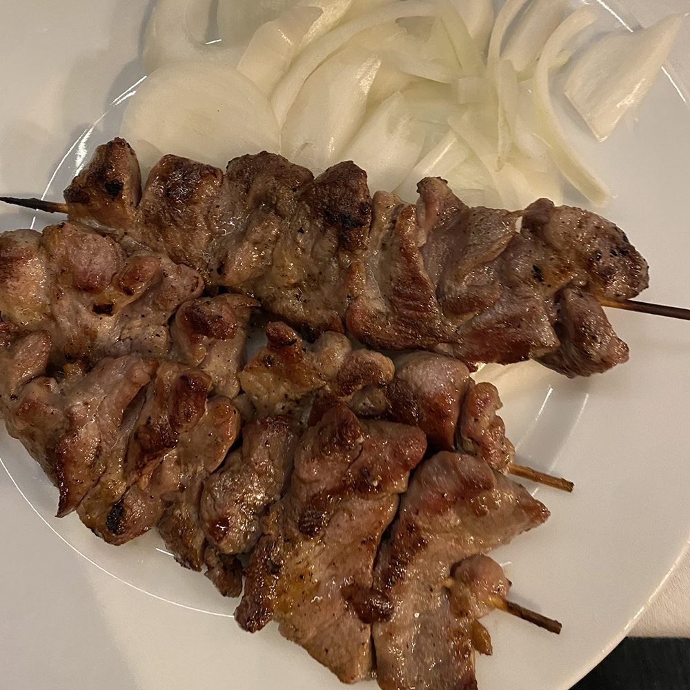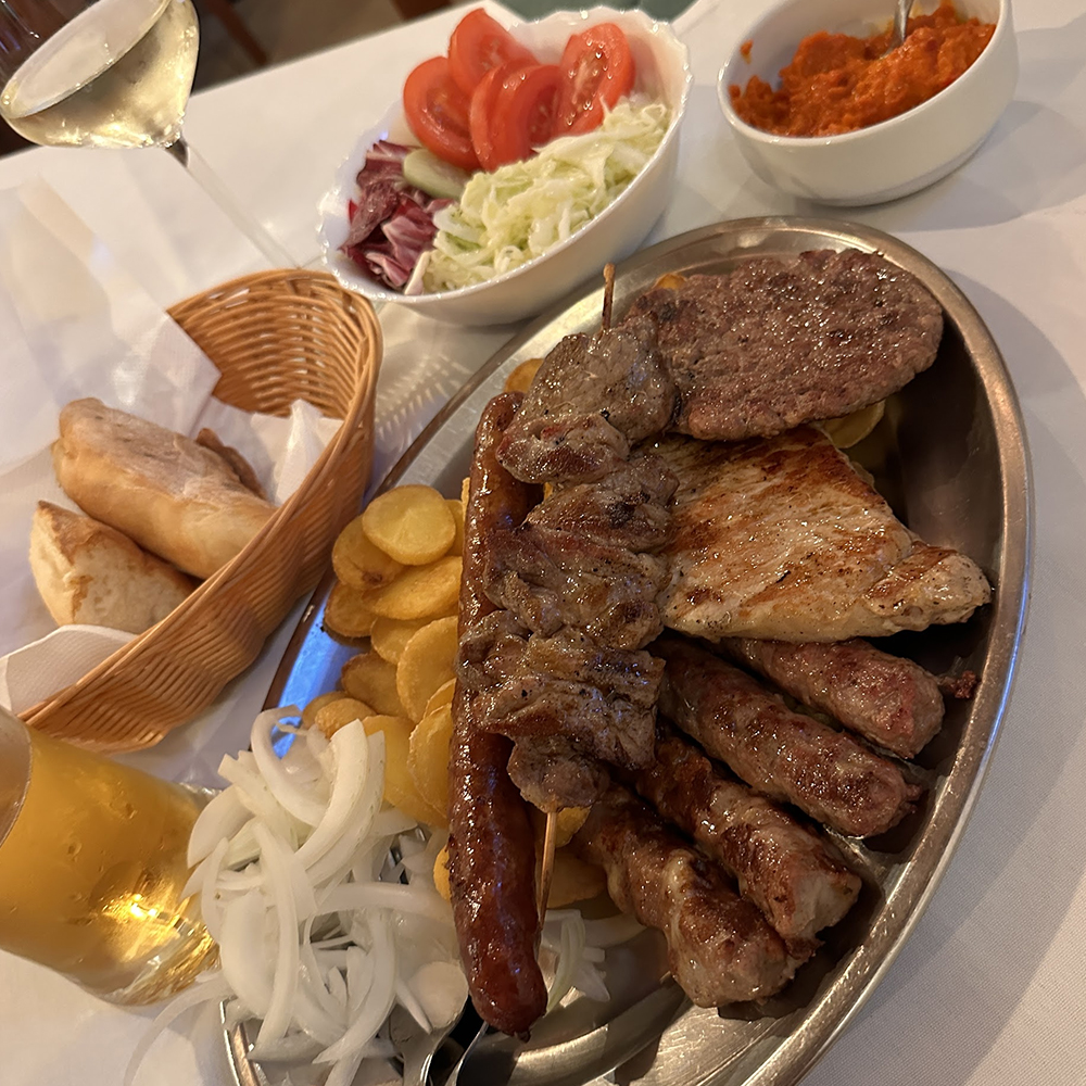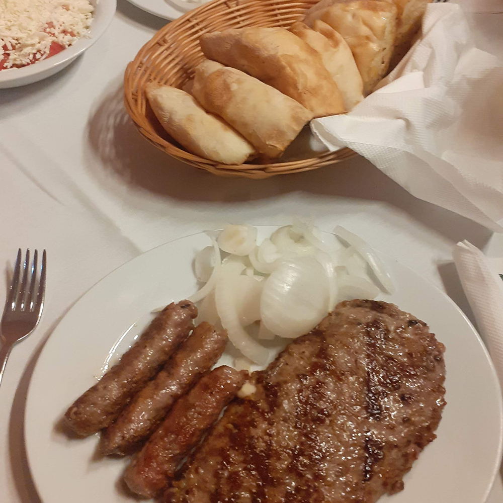 2x ćevapćić, 1x ražnjić, 1x kotlet, 1x mala pljeskavica, 1x kobasica, pola lepinje