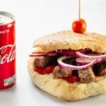 Pecivo, pljeskavica juneΔe meso, rajΔica, zelena salata, umaci, pommes frites, piΔe po izboru *slika je simboliΔna