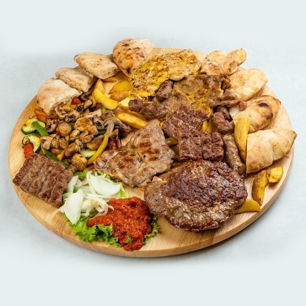 10x Δevap, 3x Ε‘iΕ‘ Δevap, pileΔi file, 3x suΔukica, pileΔi batak zabatak, pileΔa jetrica, pljeskavica sa sirom, pommes frites (400g), 4x lepinja, ajvar, kajmak *slika je simboliΔna