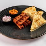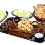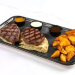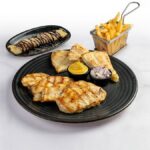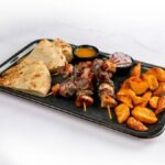 RaΕΎnjiΔ od ramsteka 125g i dimljene piletine na Ε‘tapiΔu 125g, domaΔinski krompir 100g, senf-med sos, luk, somun