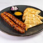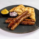 Kobasica od fino mlevenog juneΔeg mesa sa kaΔkavaljem 250g, somun, luk, senf-med sos