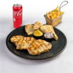 Marinirano pileΔe meso 250g, senf, somun, pomfrit 200g, Coca-Cola Zero 0.33l