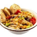 Miks salata 100g, Ε‘argarepa, kukuruz, Δeri paradajz, krastavac, pileΔi file 125g, senf-med sos, somun
