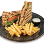 Tost 3 kom, tunjevina 60g, luk, senf, tartar sos, paradajz, zelena salata, pomfrit 100g