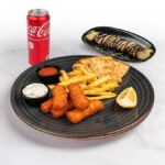 Hrskavi pileΔi file 250g, domaΔinski krompir 100g, tartar sos, somun,1 palaΔinka sa kremom i mlevenim keksom, Coca-Cola Zero 0.33l